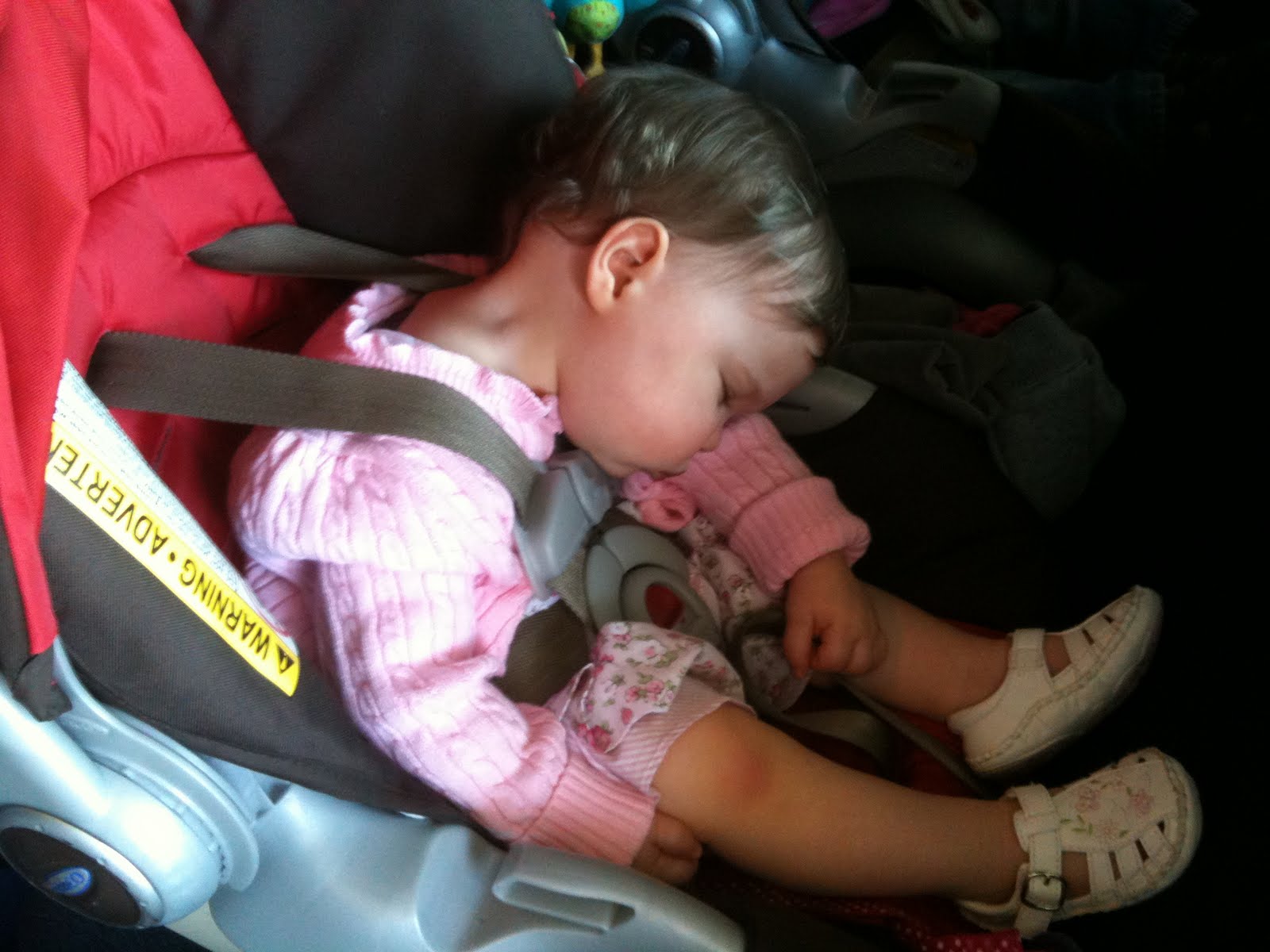 Lola had about 4 million of her closest friends over to eat pink cupcakes, drink pink lemonade, and pretty much puke up pink. We had a great time. Here are a few more pics from the big party. The babies played hard, got lots of attention, and even tried cupcakes. They were pretty quiet on the way home, and we found Olivia like this when we pulled in: