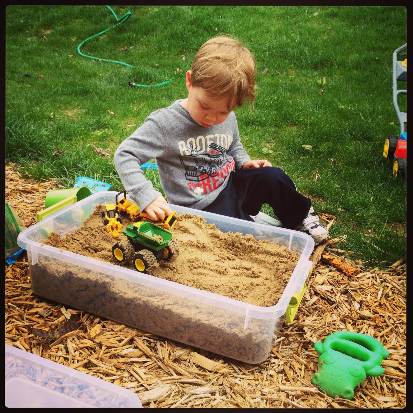 On an entirely different topic, I recently dumped a bag of sand we had around into a plastic bin. Owen LOVED it. Like, I should have saved it and given it to him as a present.